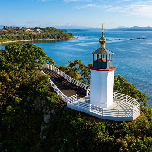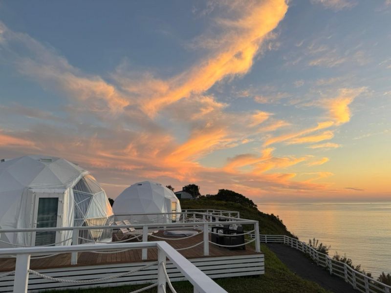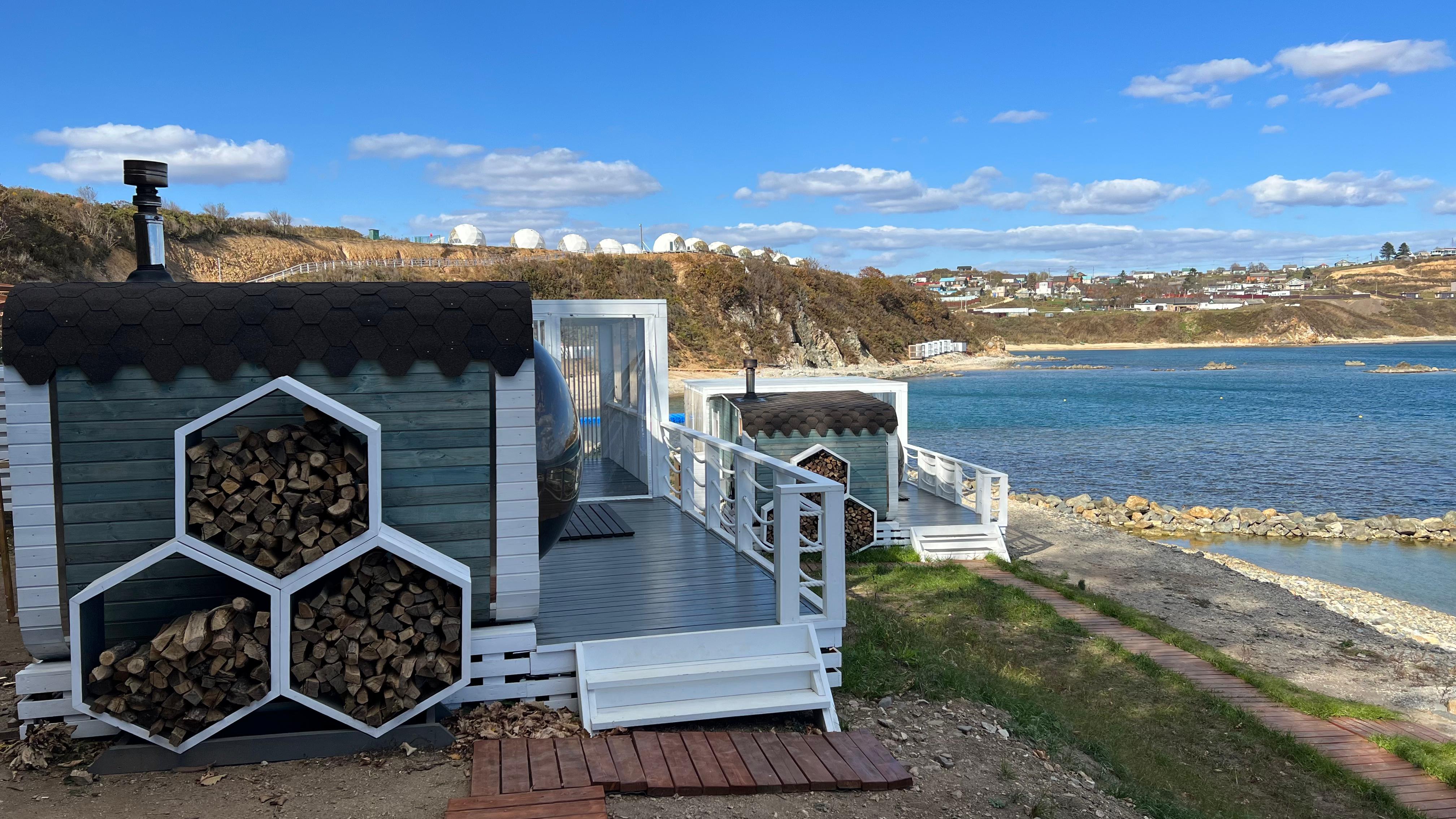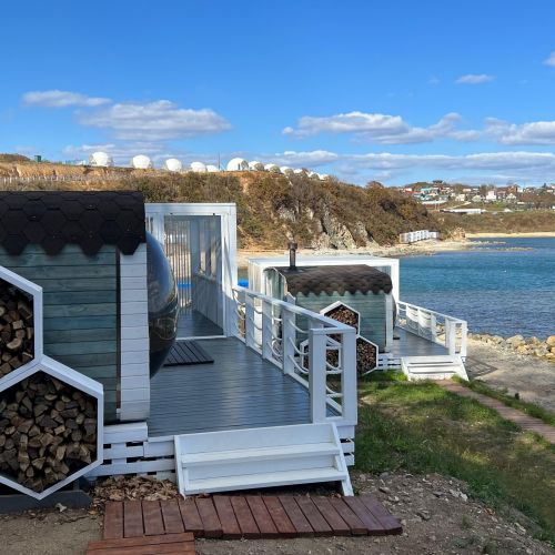 Комплекс разместился на окраине живописного мыса Пещурова, омываемого со всех сторон Японским морем. На территории комплекса расположены 15 круглогодичных современных экосфер с панорамными видами. Внутри – стильный уютный интерьер и все удобства: мини-кухня с мультиваркой, кондиционер, телевизор и санузел с душем. На открытой террасе каждого дома установлены горячие термы.